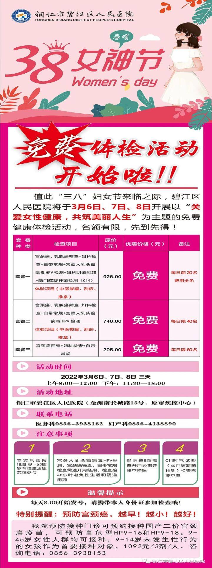 相约女神节,碧江区人民医院免费体检活动开始啦!!!