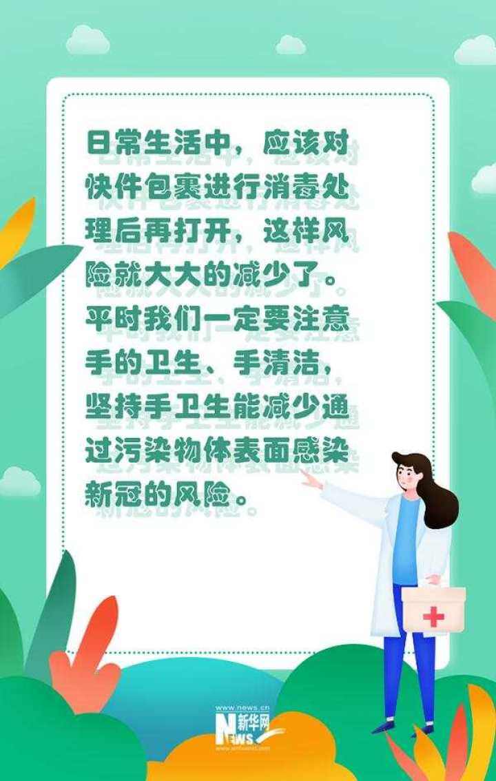 吴尊友也提示大家,日常生活当中应对快件包裹进行消毒处理以后再打开,这个时候风险就大大的减少了,平时我们一定要注意手的卫生、手的清洁,坚持手卫生就能够减少污染的物体表面而感染新冠的风险。